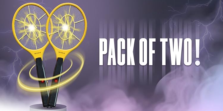 DEVOGUE® Pack of 2 Electric Fly Swatter Bug Zapper Battery Operated Flies Killer Indoor & Outdoor Pest Control Mosquito Zapper and Insect Catcher Racket (Packing May Vary)